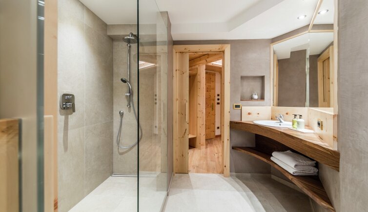 Eingebettet in eine angenehme Atmosphäre, vor der imposanten Kulisse der Dolomiten, finden Sie in der Wellness- und Wohlfühloase zu innerer Ruhe und Entspannung.