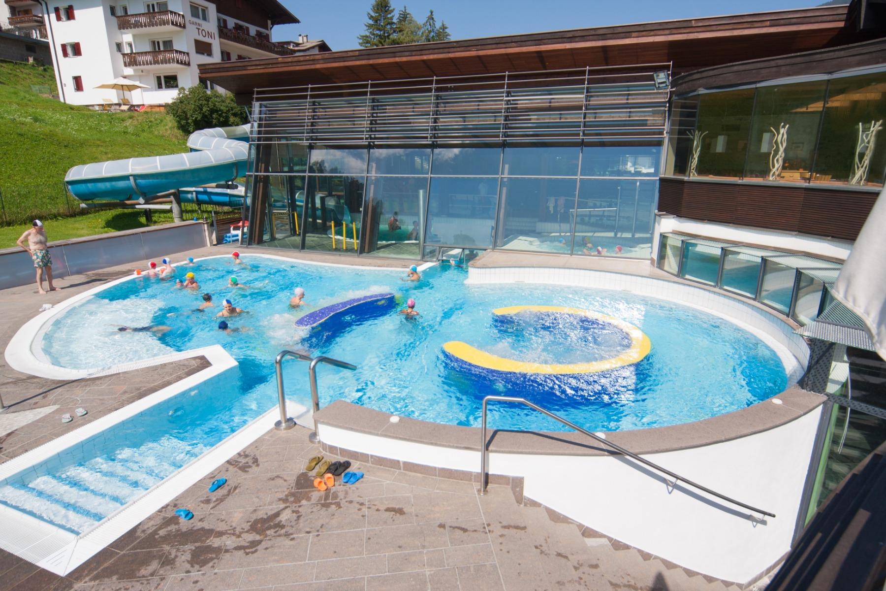 Neben dem schönen Garten mit Liegewiese vor dem Haus haben unsere Gäste freien Eintritt ins 600m entfernte „Mar Dolomit“, das mit ganzjährig beheiztem Innen-und Außenbecken und einer großen Saunalandschaft Entspannung für Jedermann bietet.