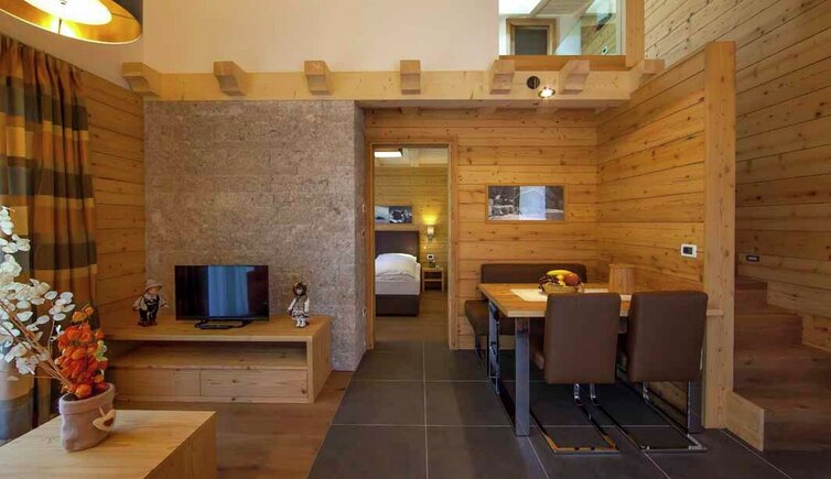 Die Mountain Residence Merk befindet sich inmitten grüner Wiesen und Wälder an der Panoramastraße zum Grödner- und Sellajoch, nur wenige Minuten vom Zentrum von Wolkenstein und vom Skigebiet der „Sella Ronda“ entfernt.