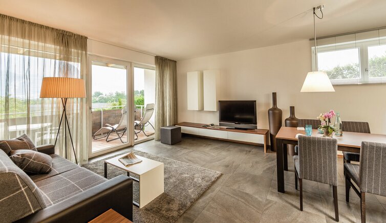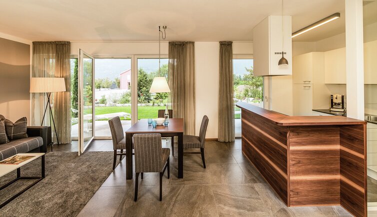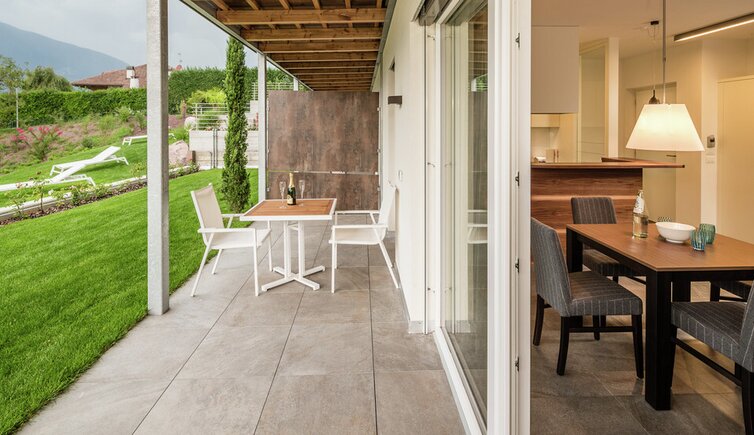 Über Garten oder Terrasse für mehr sonnige Momente verfügen sie alle und dank der großen Glasfenster sind die Appartements besonders hell.