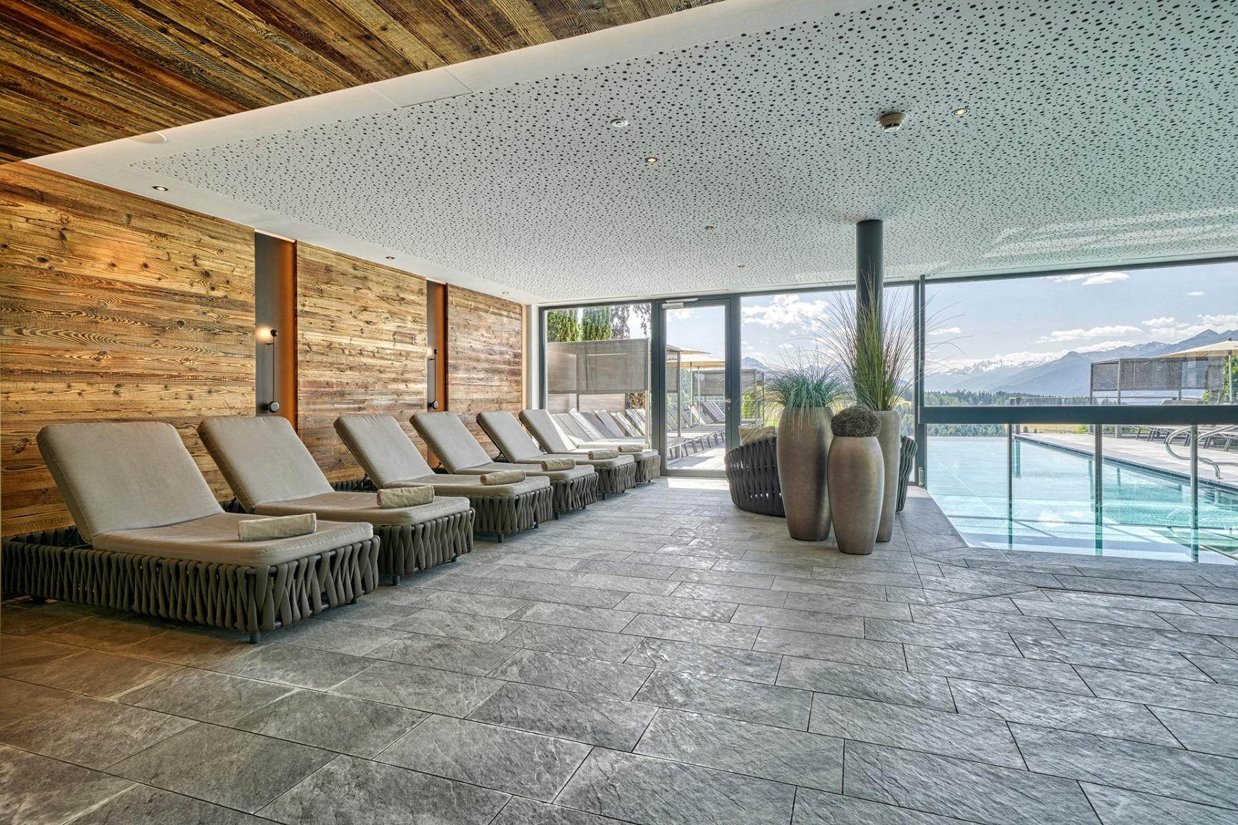 Genießen Sie die Ruhe fernab vom hektischen Alltag auf 1.300 Metern Höhe oberhalb von Meran und lassen Sie sich im neuen Wellnessbereich mit finnischer Panoramasauna, Massageräumen, Panoramapool und vielem mehr rundum verwöhnen.