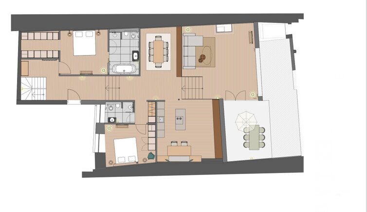 Im historischen Laubenhaus befinden sich diese großzügigen Appartements, welche mit jeglichem Komfort ausgestattet sind und damit ideal für Ihren Urlaub mitten im Herzen der Kurstadt Meran.