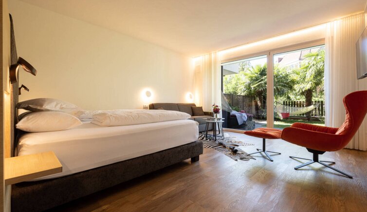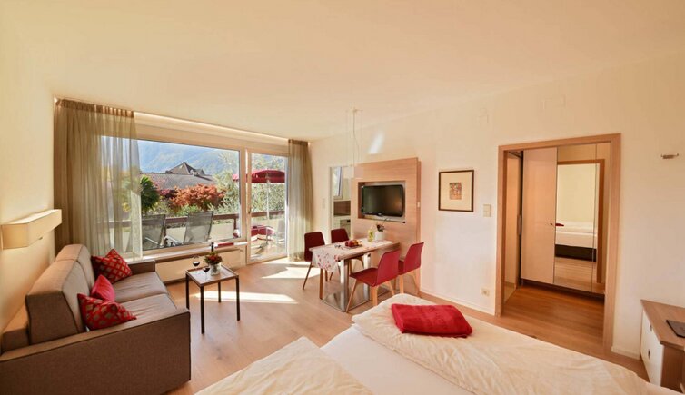 Von den stilvollen Deluxe-Apartments oder Zimmern mit Verwöhn-Frühstücksbuffet erreichst Du in nur 13 Gehminuten die Altstadt von Meran mit Therme, Boutiquen, Restaurants und Promenaden.
