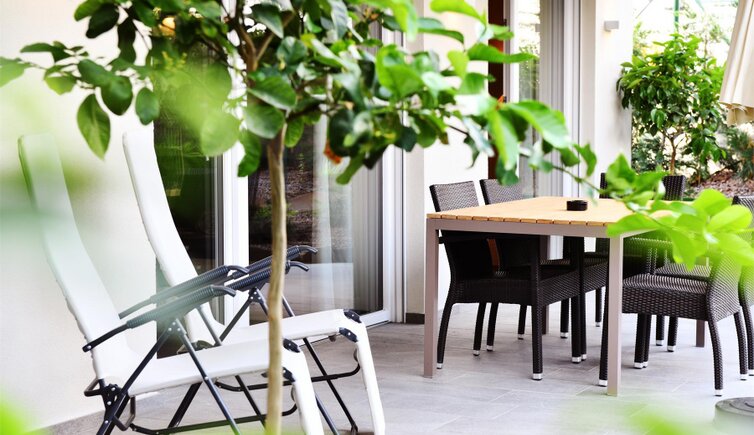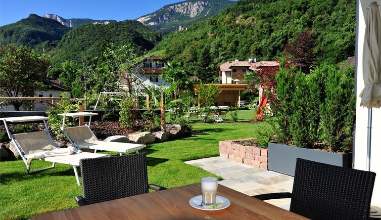 Im gemütlichen Kaminzimmer und auf der lauschigen Gartenterasse können Sie ein Gläschen guten Südtiroler Wein trinken.