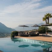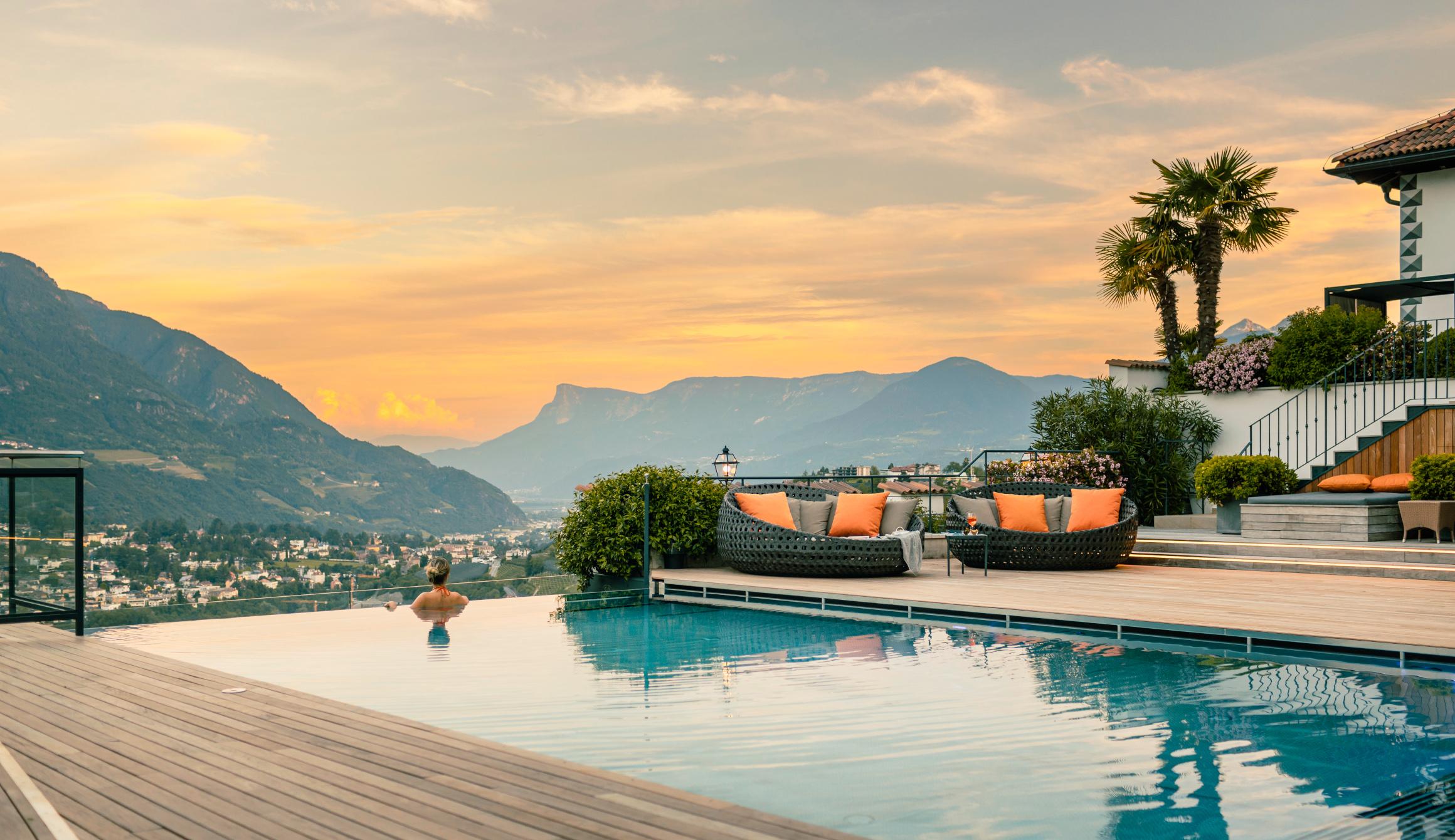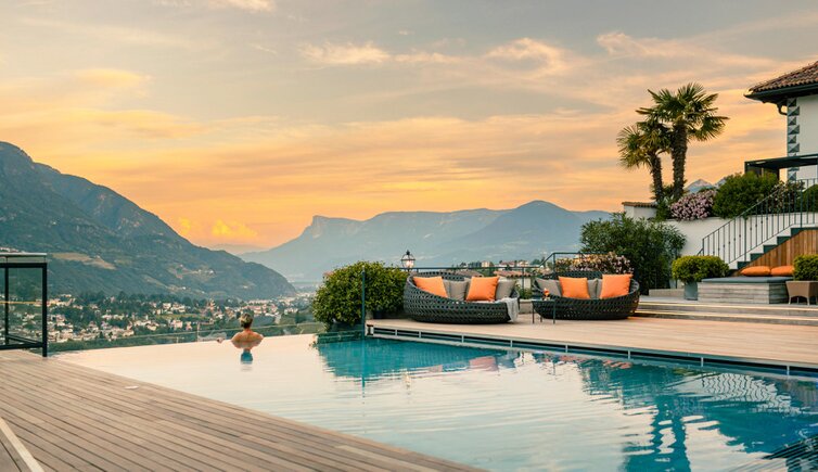 Das Hotel Golserhof ist das kleinste 4****S-Hotel im Meraner Land. Die Aussicht in den Hügeln über Meran ist traumhaft.