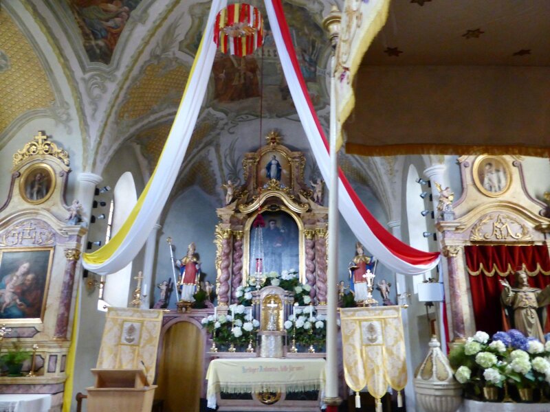 Anfang Juli steht das gesamte Dorf an einem Tag ganz früh auf: Dann wird die Bachprozession zu Ehren des Heiligen Johannes Nepomuk abgehalten. Seit zwei Jahrhunderten beginnt sie mit Böllerschüssen im Morgengrauen, danach startet die Prozession. Der eigentliche Feiertag des Heiligen wäre Mitte Mai, doch zu dieser Jahreszeit lag früher oft noch zu viel Schnee.