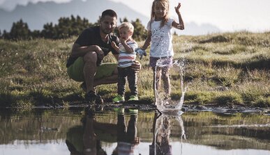 Verträumte Wanderwege, blühende Almwiesen, glitzernde Bergseen und ein atemberaubender Ausblick.Urlaub ohne Auto: direkt am Hotel starten die schönsten Wege!