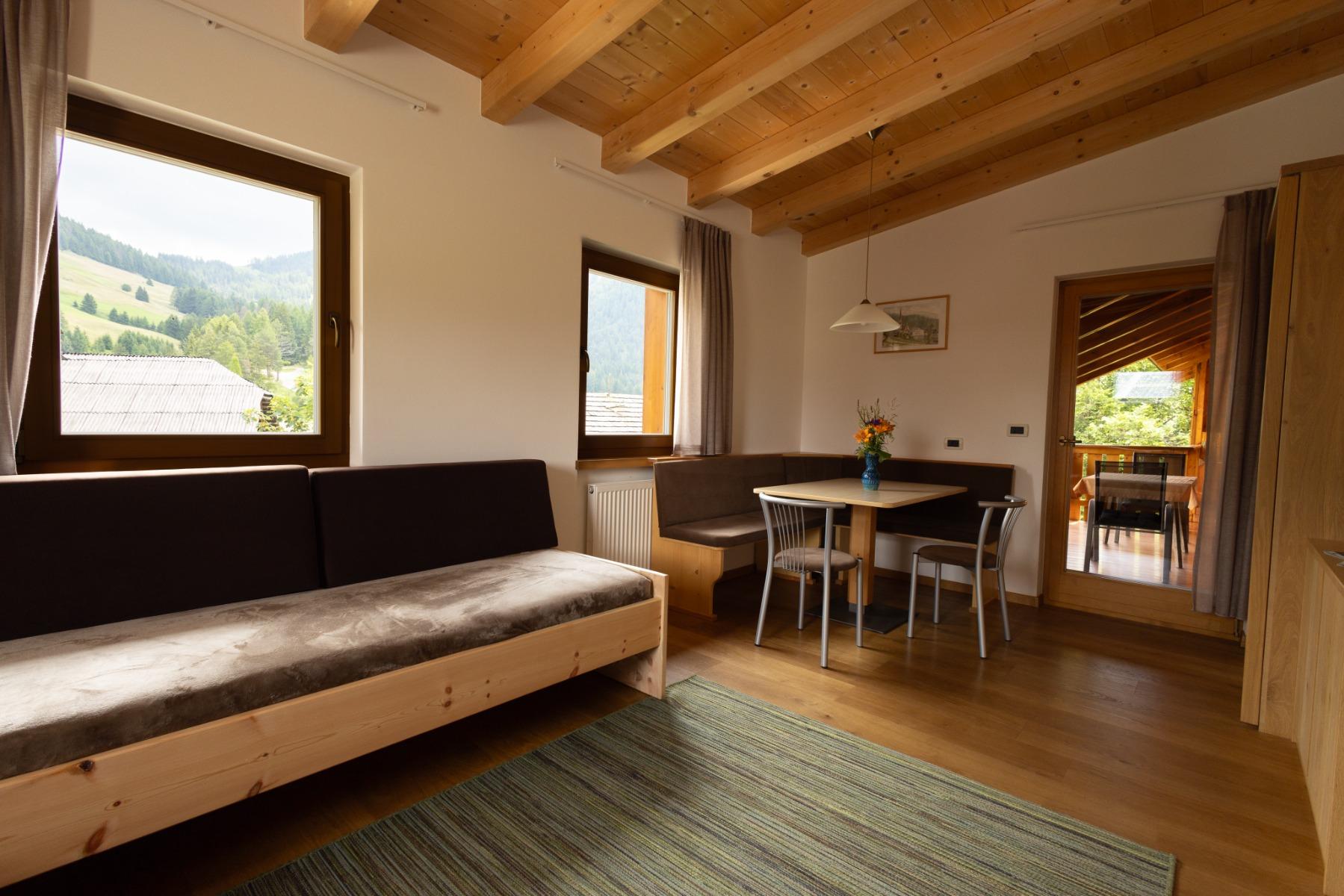 Genießen Sie ein besonderes Bauernhofflair und urlauben Sie in den komfortablen und voll ausgestatteten Ferienwohnungen vor der eindrucksvollen Bergkulisse des Kreuzkofelmassivs und des Peitlerkofels.