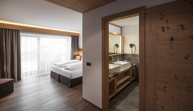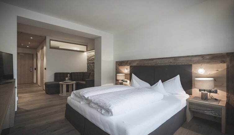 Eine Wellnessoase samt Wellnessgarten, Gaumen-Freuden für Feinschmecker und ein Wohlfühlambiente, das in den Suiten und Zimmern mit Traumblick auf die Dolomiten seinen Höhepunkt erreicht.