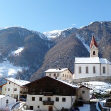 Hoch über dem Eingang des Schnalstales thront auf einem steilen Felsen die Pfarrkirche von Katharinaberg. Sie ist bezeichnenderweise der Heiligen Katharina von Alexandrien geweiht. Früher stand an dieser Stelle die Schnalsburg. An ihre Existenz erinnert heute noch der Kirchturm, der auf den Fundamenten des ehemaligen Burgfrieds errichtet wurde. Von Katharinaberg aus genießt du einen weiten Ausblick über das Schnalstal und das Etschtal bis hin zu Schloss Juval bei Kastelbell.