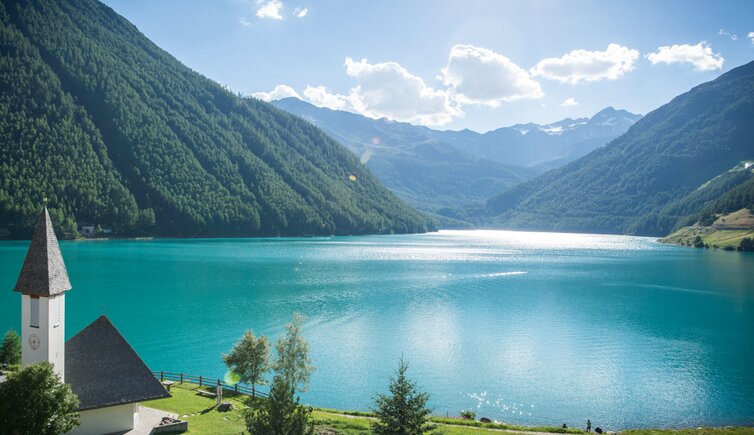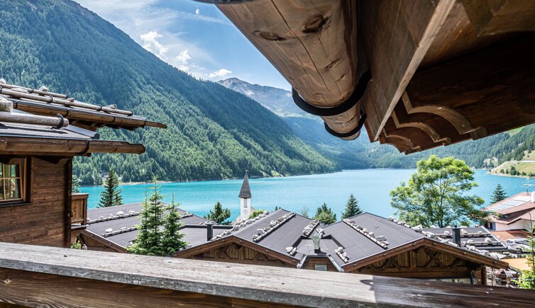 Schöne traditionelle Stammhaus Doppelzimmer, Familienzimmer & Einzelzimmer mit einzigartigem Seeblick und Blick auf die schönen Schnalstaler Berge, eingerichtet mit allem Komfort, Bad mit Dusche oder Badewanne, WC, Föhn, Telefon, Tv mit Sat sowie W-LAN Internet Verbindung und Balkon mit Liegestühlen. Alle unsere Zimmer sind allergikerfrei und verfügen über Parkett - Holzböden.
