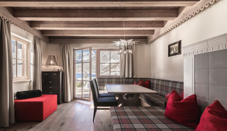 Die neuen kuschligen kuschligen Chalet Suiten, die Perlen unseres Almdorfes mit jeglichem Komfort und traumhaften Seeblick, 50m² Wohnfläche, davon separatem Schlafzimmer, Wohnraum mit Sitzecke, Liegecouch mit Kachelofen für gemütlich erholsame Stunden sowie schönem Badezimmer und Ruhe/Kinderkojen. Ob mit Balkon oder Terrasse entgeht Ihnen nirgends die Schönheit des Schnalstales in luxuriöser Privatsphäre. Wohnen wie Anno Dazumal mit dem Komfort von Heute!