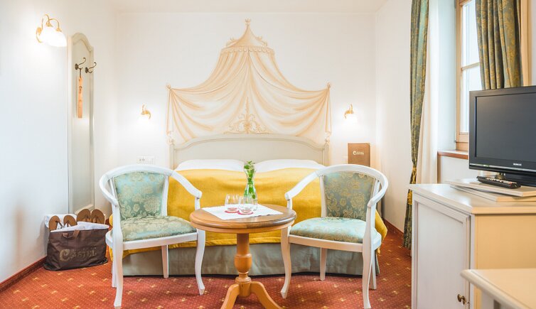 Entspannung pur bieten sowohl die neuen, hellen Zimmer, als auch das hauseigene Castel SPA mit seinem Schwimmbad, dem Whirlpool, vier Saunen und einem Kneipp-Becken.
