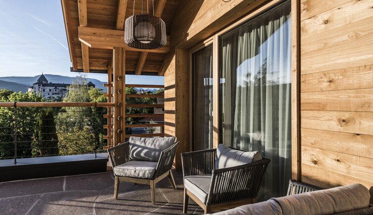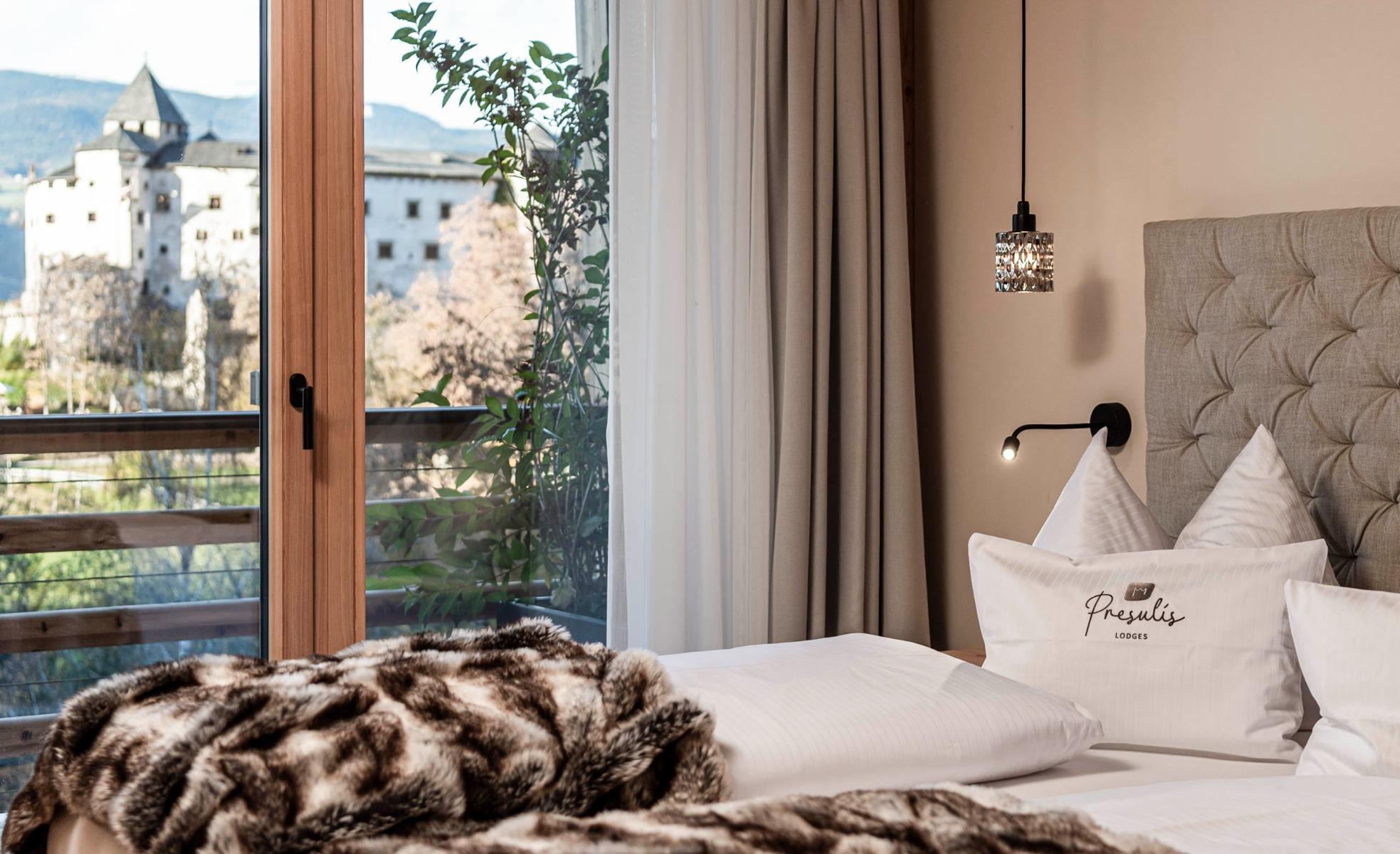 Die Luxus Ferienwohnungen sind warm und schlicht gestaltete Räume mit hohem Wohlfühlfaktor. Der Panoramablick auf das märchenhafte Schloss Prösels oder die umliegenden Berge ist umwerfend.