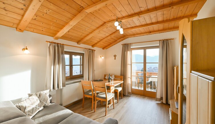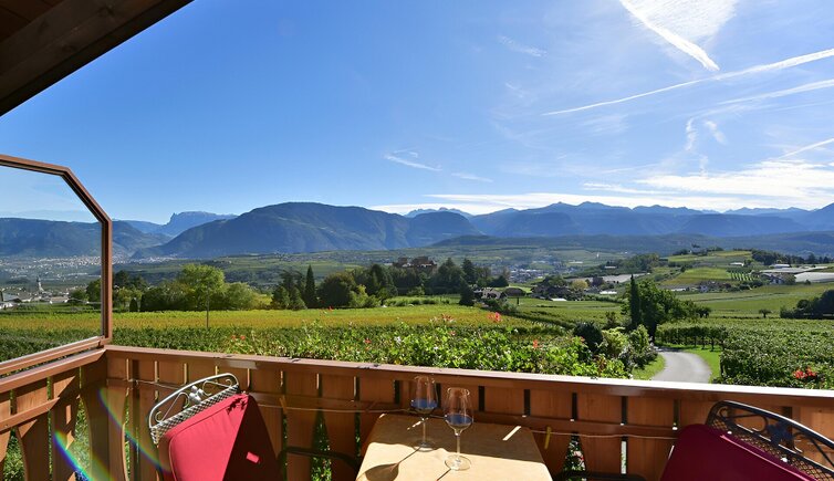 Der Schlern, Latemar, Schwarz- und Weißhorn, die Landeshauptstadt Bozen, die einmalige Wein und Obstlandschaft…all diese Schönheiten Südtirols können Sie gemütlich mit einem Glas Wein vom Balkon Ihrer Ferienwohnung aus genießen.