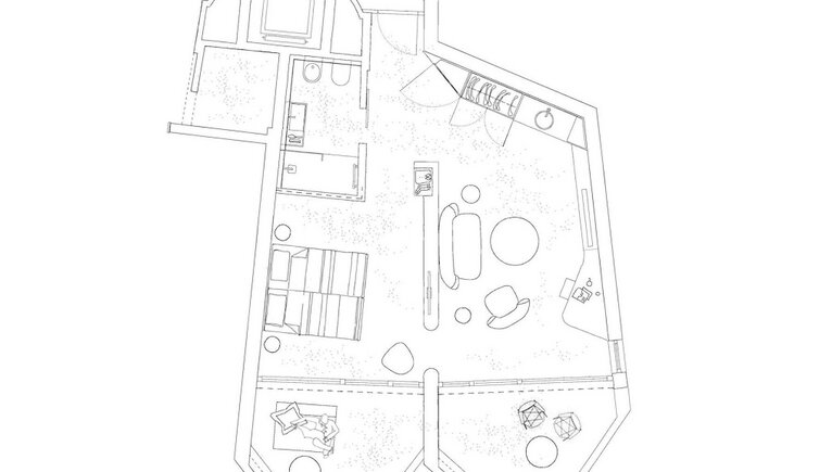 - 28 Zimmer und 4 Suiten im 1970er Stil, mit modern ausgestattetem Bad, Klimaanlage, Wandsafe, Minibar, Flatscreen TV, kostenlosem Wifi, Telefon, Föhn, Kosmetikspiegel, Badetasche mit Bademänteln.