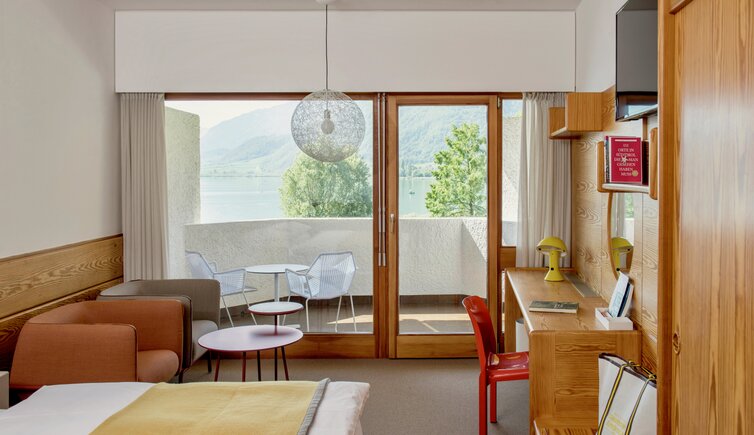 Die Terrassen, die große Liegewiese, zwei private Badestege und das Badehaus mit Schwimmbad, Saunas und Whirlpool laden zum Genießen und Entspannen ein. Von allen Zimmern aus erleben Sie einen Ausblick über den See, auf die imposante Bergkulisse und den Park des Hotels.