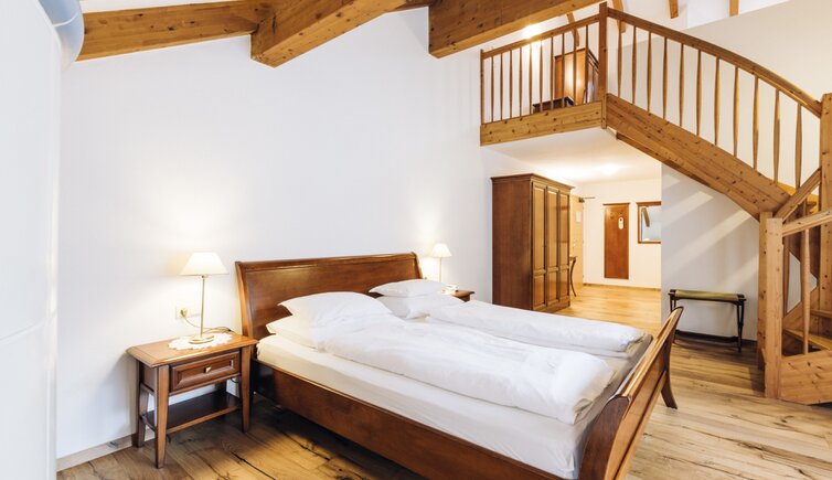 Einige Zimmer sind nach Aussichtspunkten benannt, wie die “Salurner Klause” oder die “Schloss-Suite” mit Blick auf das Schloss Enn.