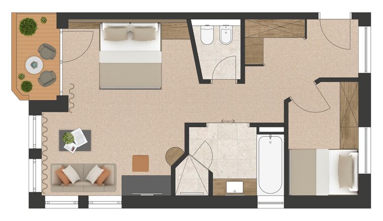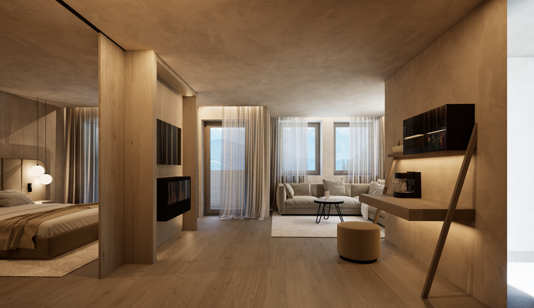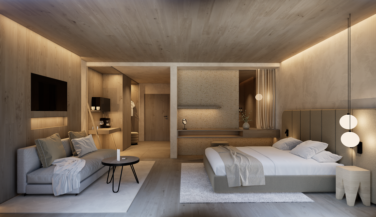 Übernachten Sie in neuen, großzügigen Zimmern und Suiten mit viel Holz und natürlichen Materialien eingerichtet.