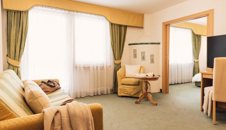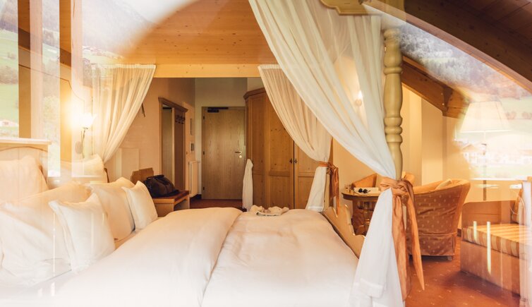 Sich wohlfühlen in den behaglichen Zimmern und Suiten, ausgestattet mit Himmelbett, Kachelofen, Whirlpool, und einer Vielzahl an weiteren Serviceleistungen.