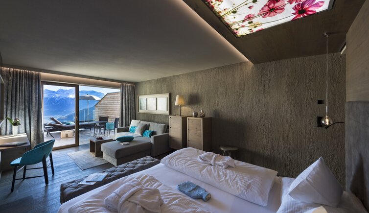 Elegant, einladend und mit traumhaftem Blick auf den Cevedale oder über den Vinschgau sorgen die stilvollen Zimmer und Suiten für einen unvergesslichen Urlaub.