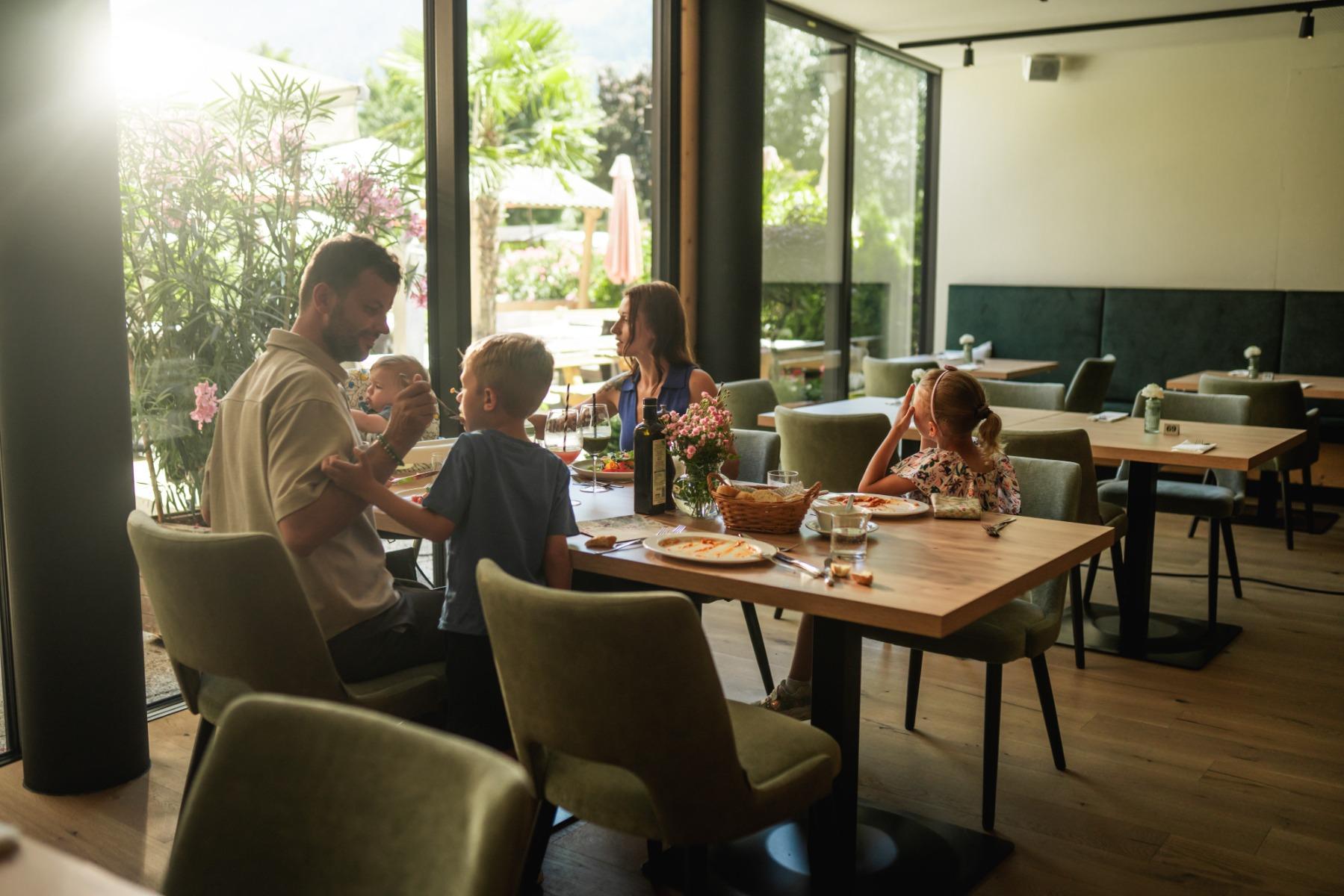 Das Restaurant verwöhnt Sie mit saisonalen regionalen Gerichten, italienischen und internationalen Spezialitäten und knusprigen Pizzas.