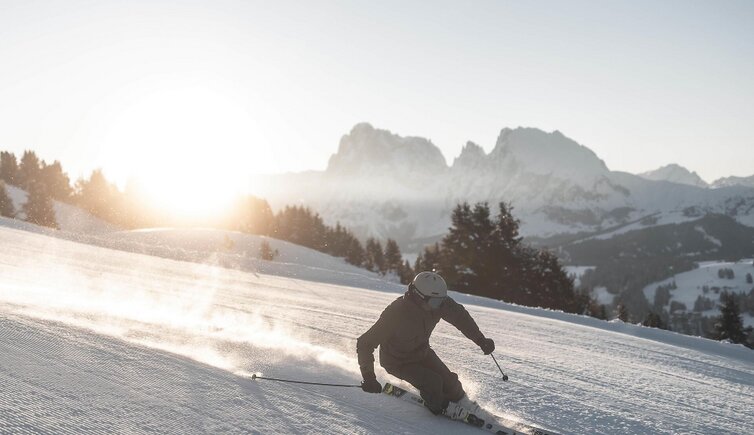 Here is the reason why you should get up early during your ski holiday: On five days in March and April (Wednesdays) three ski lifts open alternately and exclusively at 7:00 am. Early birds have the opportunity to cross the freshly groomed and deserted slopes and enjoy the special morning atmosphere on Europe's largest mountain plateau, while being accompanied by ski instructors and receiving valuable tips. At 9:00 a.m. breakfast is served in the mountain hut. During the rich alpine breakfast with many delicious products from South Tyrol you can enjoy the morning sun and recharge your batteries before you head straight back to the slopes.
