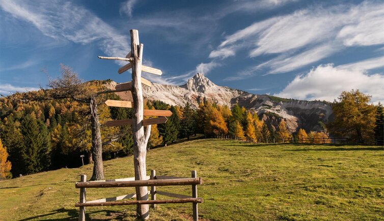 We take the bus from Deutschnofen | Nova Ponente to the GEOPARC Bletterbach visitor center. There, the guided tour of the museum begins before you descend into the impressive gorge. Explore the narrow Taubenleck section and the Butterloch. We then follow the European long-distance hiking trail E5 towards Weissenstein | Pietralba, passing through the Kösertal valley (1696 m) until we reach Maria Weissenstein.