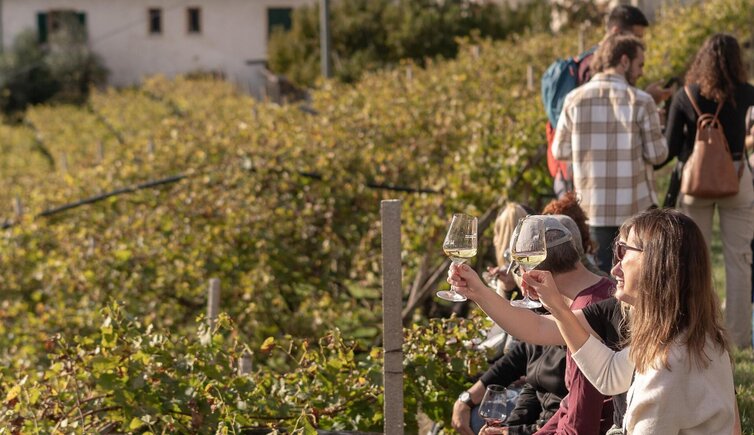 At five selected stations, the winegrowers offer for tasting those wines that grow in the respective altitudes along the wine steps between Rentsch and Signat. From the rich Lagrein to the aromatic Gewürztraminer to the spicy Kerner: a whole 13 grape varieties ripen on the 3.5 km long REBE wine hiking trail! At the end, a cozy chill-out awaits hikers and wine lovers at Ansitz Waldgries with culinary delicacies and the lively sounds.