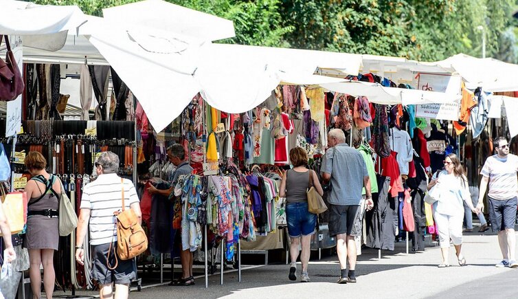 Weekly market of different textiles and accessories in Kaltern. On Wednesdays