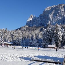 The Fiè Pond is situated only 12 km above Bolzano, in other words within easy reach by car or by public means of transport. In summer it invites to enjoy the clear mountain air and to swim, on its parking space there's an information point of the Sciliar-Catinaccio Nature Park you may visit. In winter, however, you can go ice skating: The Fiè Pond is one of the few lakes in South Tyrol which are cleared for ice skaters in case of snowfall. The return from the above mentioned Tuff Hut can be done by sledge in those months: The toboggan run is 2.4 km long and medium difficult.