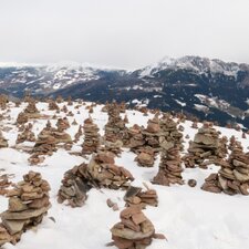 Perhaps, as in other places, it was also hikers or shepherds who placed the stone slabs on top of each other as a sign to return here or simply to pass the time. What is certain, however, is that this cult site in the Sarentino Alps is something special that is well worth a visit. The view after the 3.5-hour ascent is unique: The hike to the "Stone Men" starts at the Sarentino Mountain Hut - also the variant of the winter hike to the Giogo dei Prati ridge can be extended to these piles of stones.