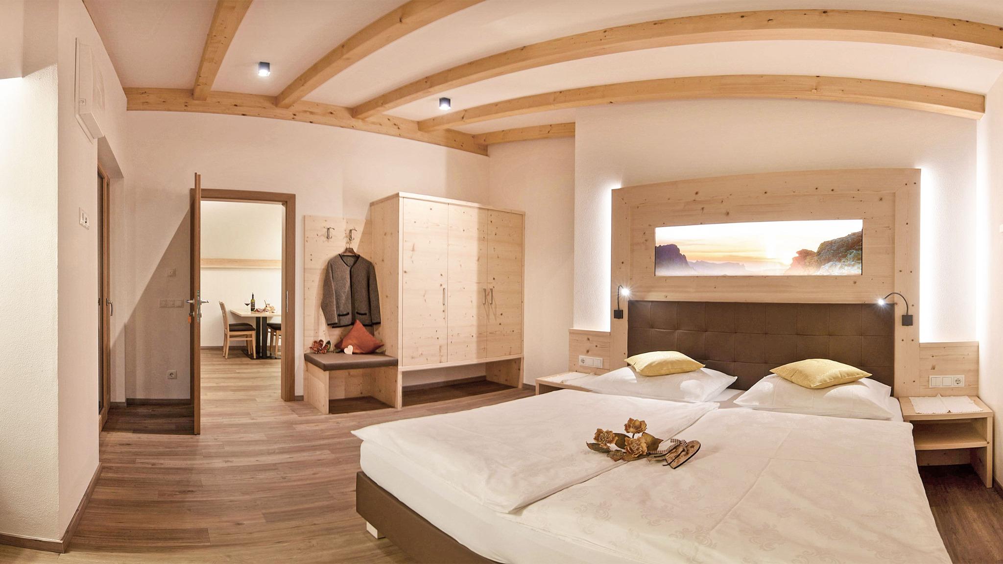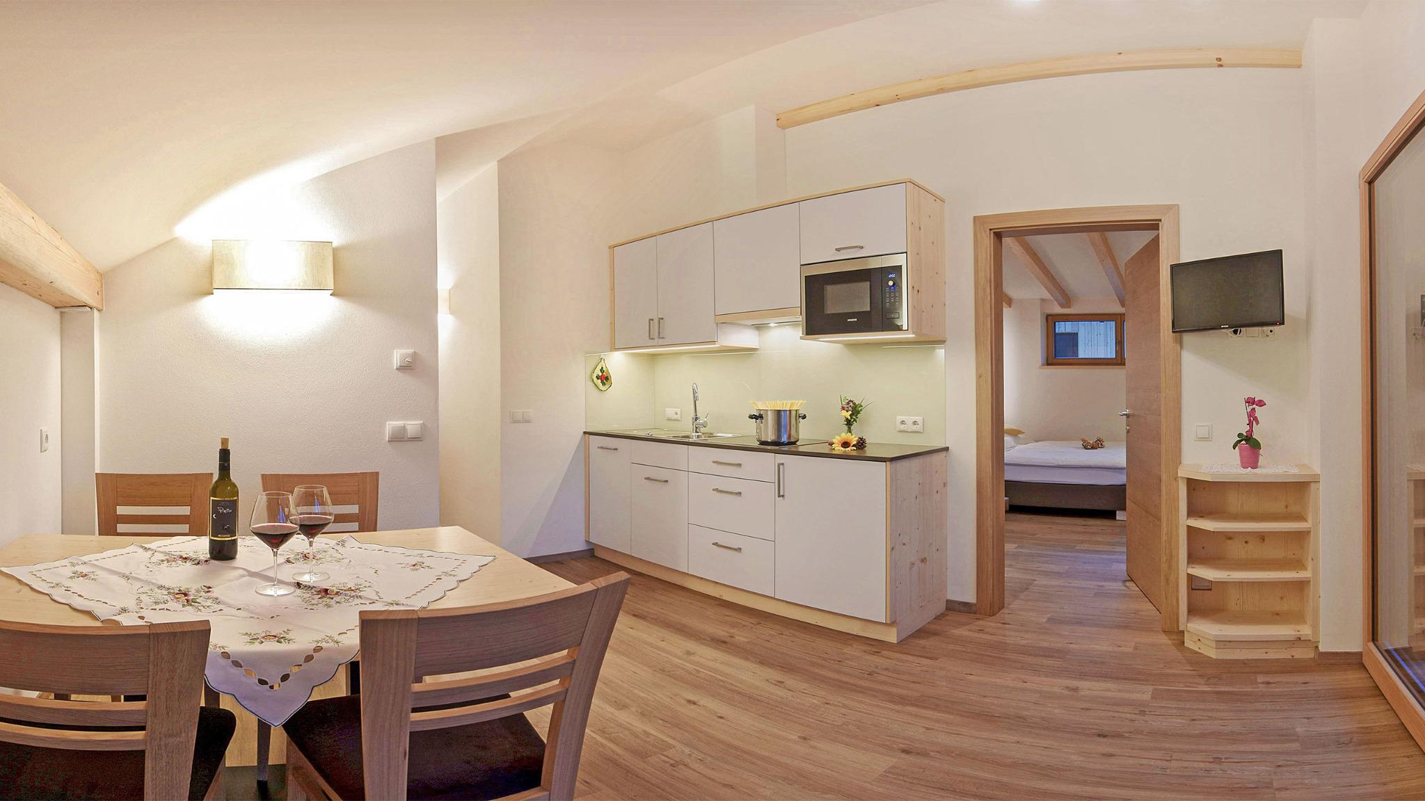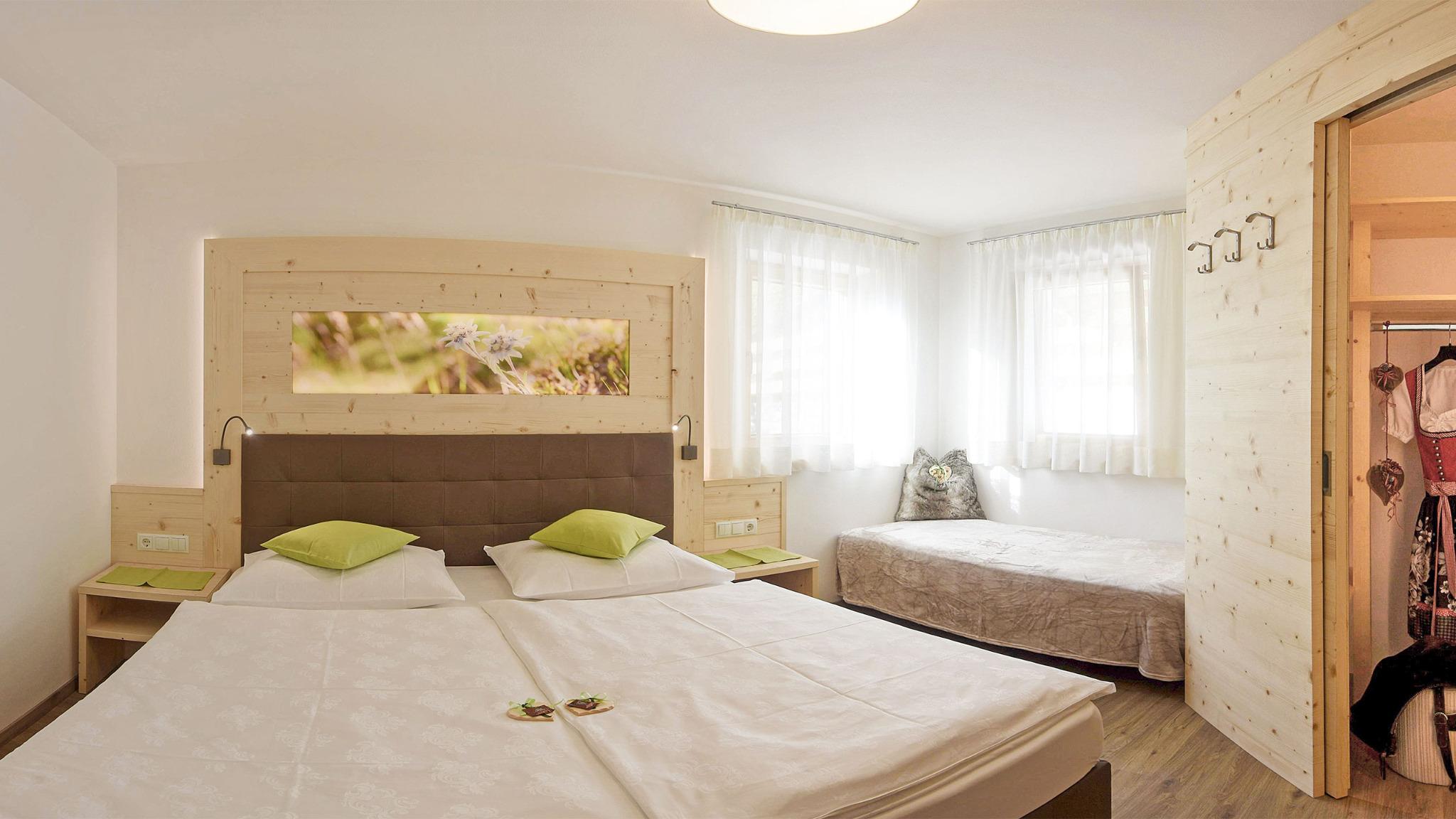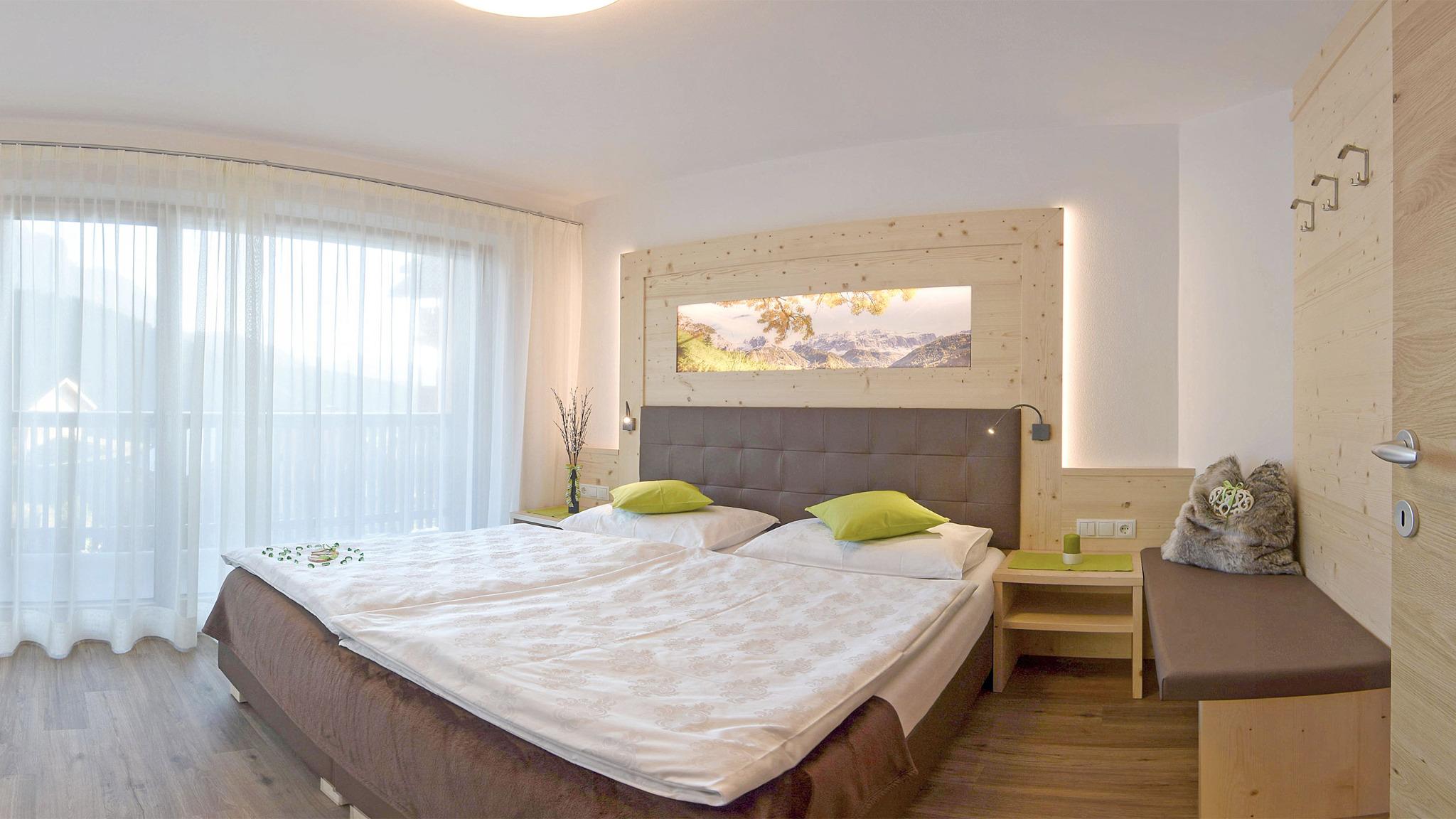 Our four new holiday apartments, comfortably furnished with spruce wood, feature a south balcony and free Wifi – towels and linen are included. Our terrace and our small lawn, however, invite to relax.