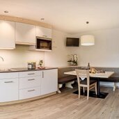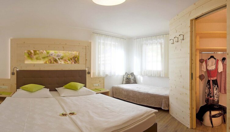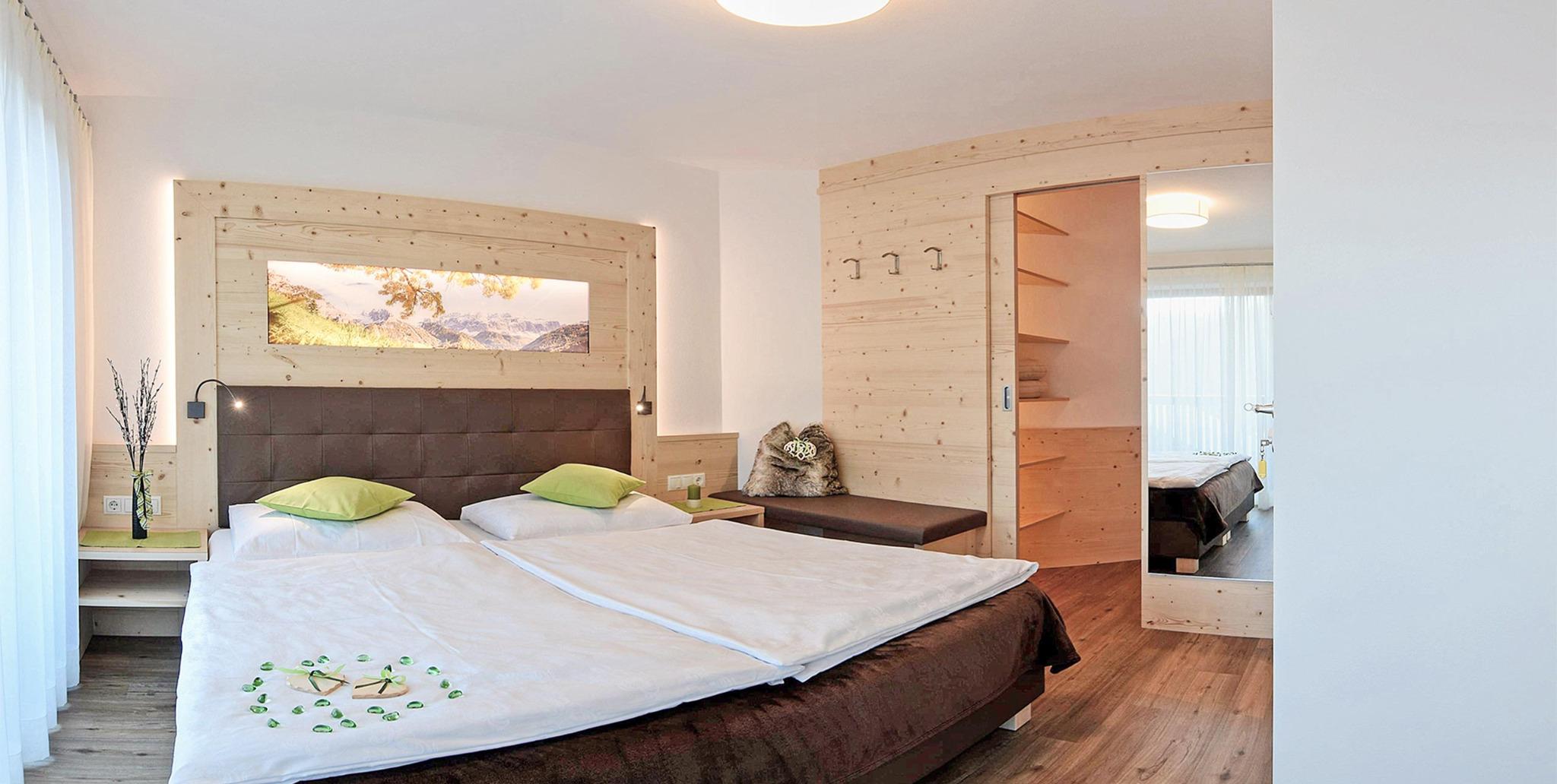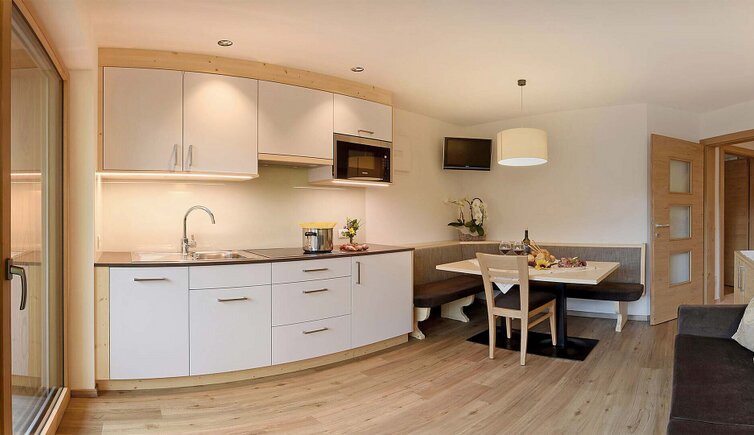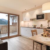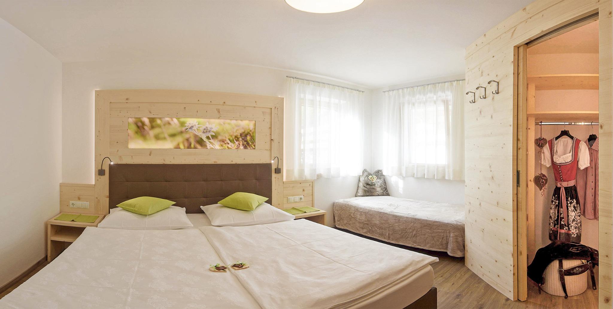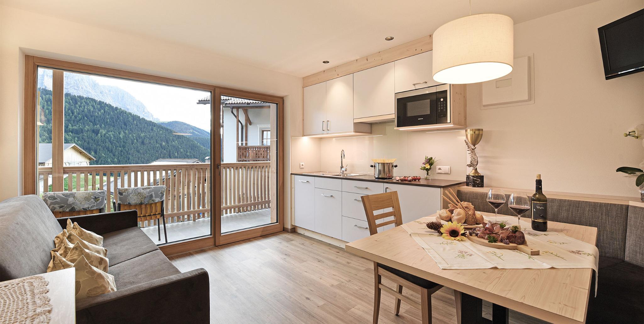 Our four new holiday apartments, comfortably furnished with spruce wood, feature a south balcony and free Wifi – towels and linen are included. Our terrace and our small lawn, however, invite to relax.