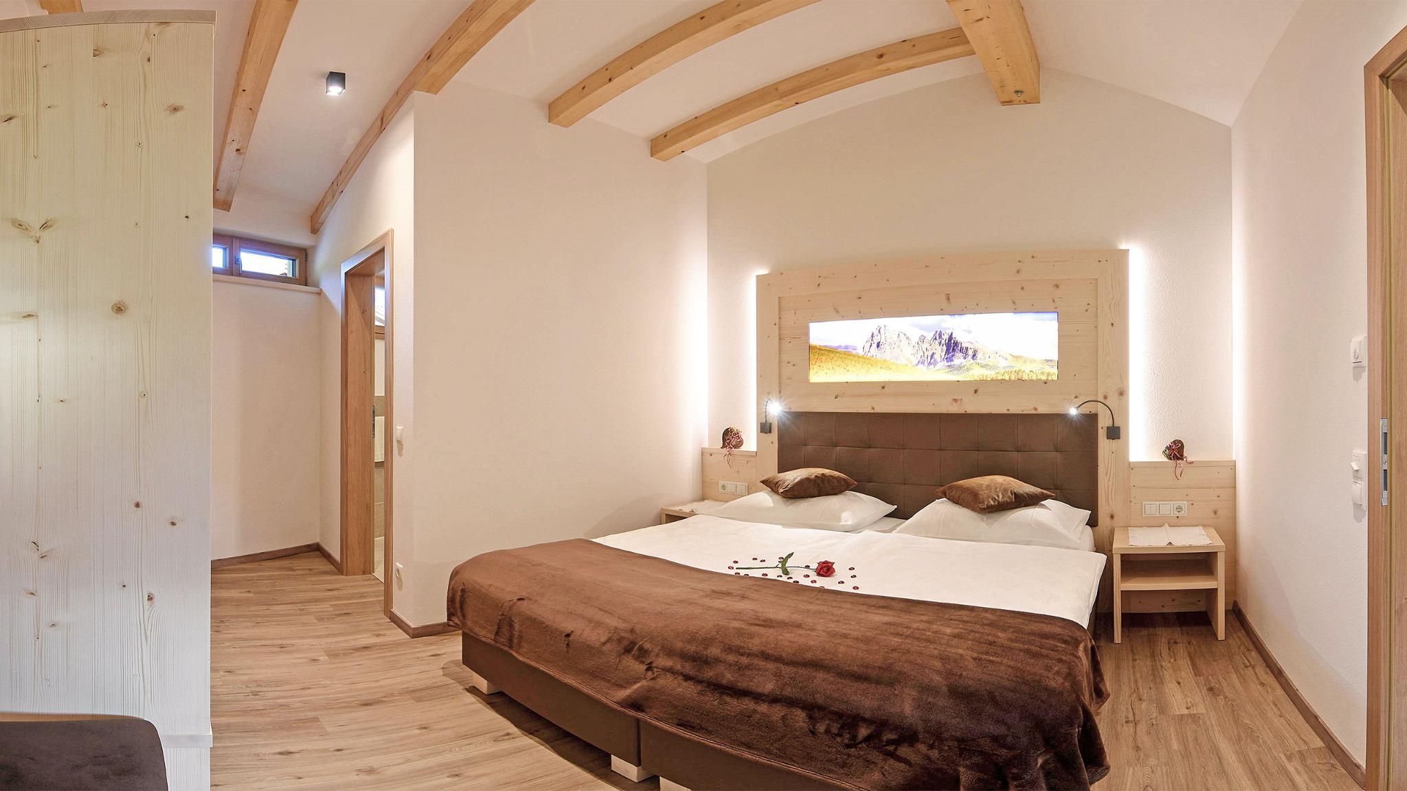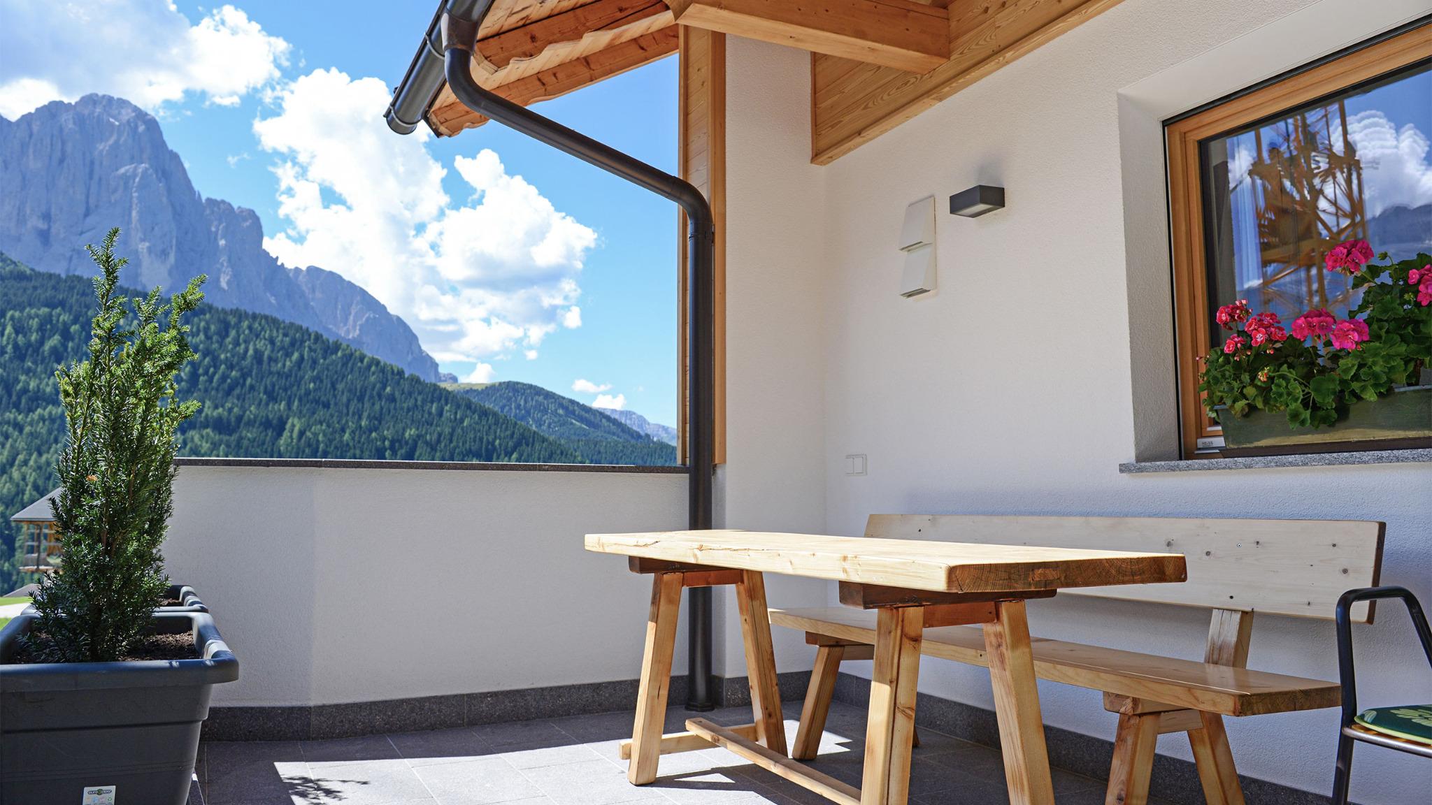 It offers a beautiful view on Selva and the entrance to the Vallelunga valley as well as on the famous Dolomite peaks of the Odle, Sella and Sassolungo Groups and Mt. Sciliar.