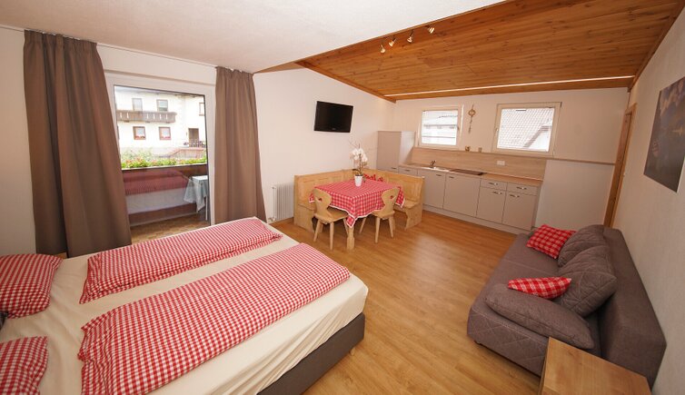The house is in a quiet yet central location, just a few minutes’ walk from the village of San Lorenzo di Sebato in the Val Pusteria valley. From the cosy holiday flats you can enjoy a fantastic view.
