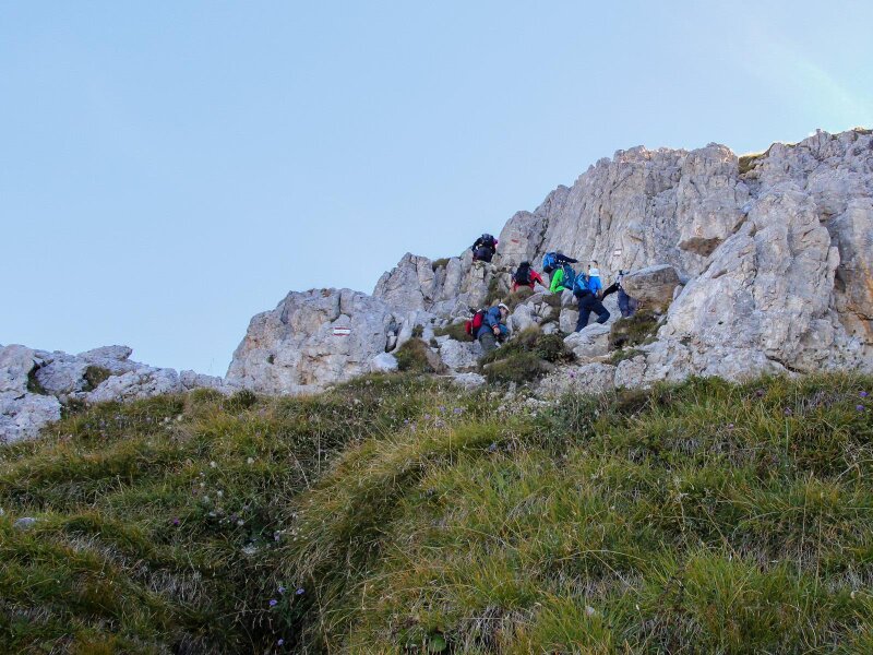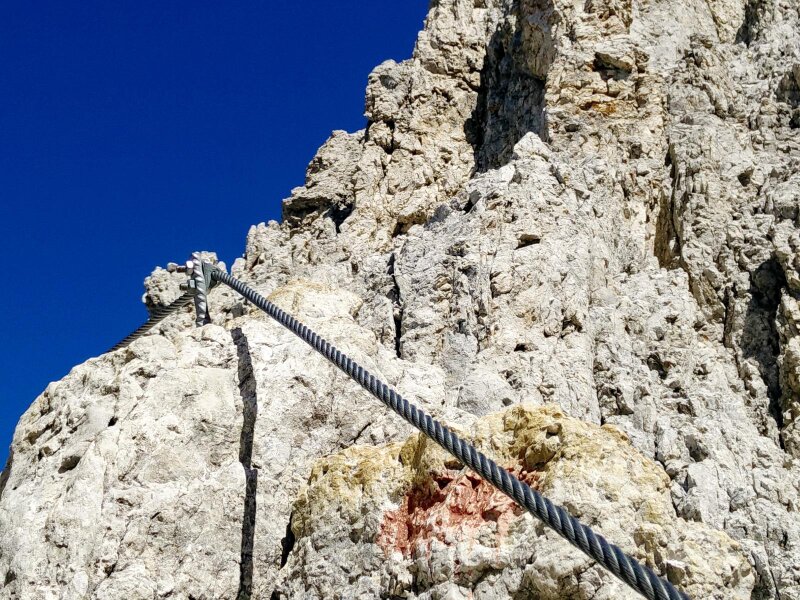 - Technical difficulty: B/C, difficult in places, especially in the secured sections. Unsecured passages make up about 66% of the via ferrata and require climbing at grades I and II, while the secured sections are mostly in the B range. The overall time shown above refers to the walking time only, not including breaks.