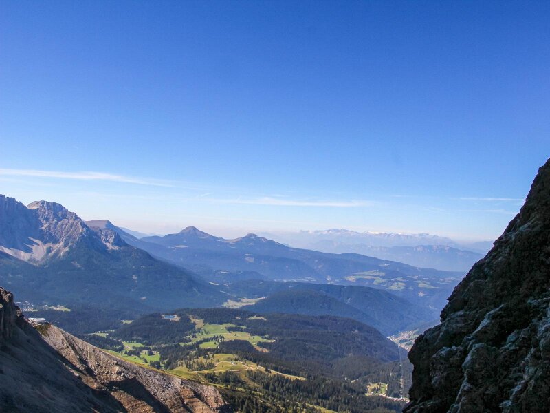 The starting point for our via ferrata tour is the Rifugio Fronza alle Coronelle, a mountain hut in the Catinaccio Group. The new convertible cable car starts in San Cipriano near Tires al Catinaccio and first takes you to Frommer Hut at an altitude of 1,740 metres. Then, take sections 1 and 2 of the Re Laurino Cable Car up to the Rifugio Fronza alle Coronelle, which sits another 600 metres higher up.