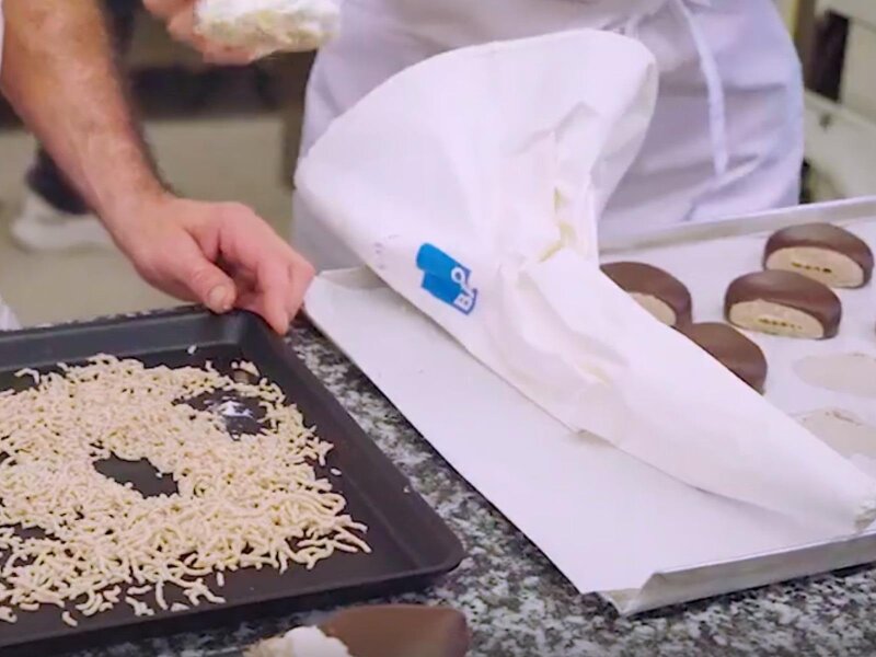 - Dip the hearts into the melted couverture, ensuring they are completely covered, then place them on baking paper to dry.