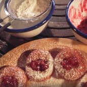 Traditional farmhouse doughnuts with lingonberry jam, mainly baked in winter - these are Kniakiachl