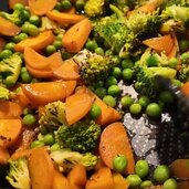 - Briefly blanch the vegetables - broccoli, carrot and peas.