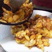 Ideal as a hearty breakfast or for an energy boost after a day outdoors: rösti with speck and eggs. The key to good pan-fried potatoes is to give them enough space in the pan to become crispy.