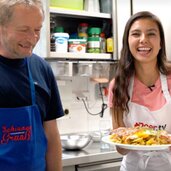 The dish is ready: Simply arrange the rösti on plates, sprinkle with South Tyrolean Speck, and top with the fried egg. For presentation, you can garnish with fresh herbs as desired.