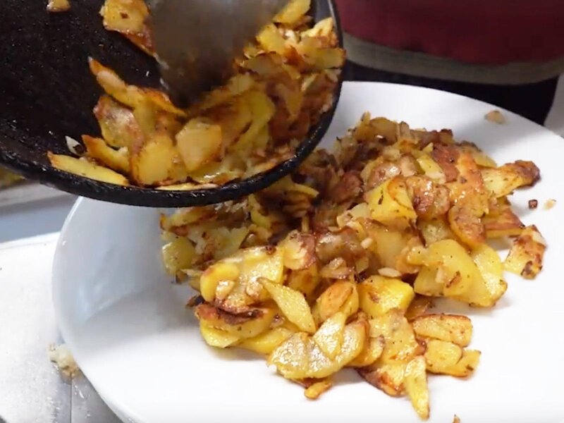 - Add 1-2 tbsp of butter: Once melted, add the potato slices and the chopped onion.