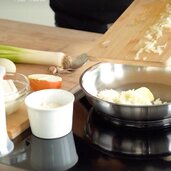 Alongside the classic dumpling variations with speck, spinach or beetroot - often served as a trio during Toerggelen - there are also sweet versions with plums, apricots, strawberries and vanilla sauce. This time, we are trying a recipe for a healthy version with vegetables.