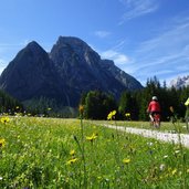 It is not without reason that this area is one of the most beautiful in the Dolomites of the Val Pusteria valley. Now the descent follows the asphalted mountain road down to Ponticello in Braies Vecchia. We continue on the Via Braies road to the exit of the valley, where we turn into the "Pusterbike" Cycle Path towards Dobbiaco. Comfortably and smoothly uphill we cycle the last kilometres of our round trip which leads us back to our starting point again.