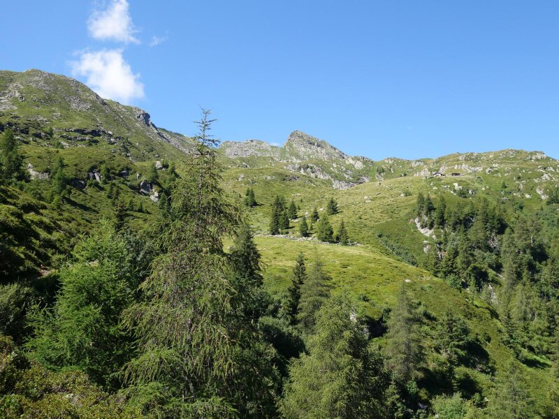 San Martino in Passiria is our destination today for a panoramic hike on this somewhat overcast September day. To be precise, we drive as far as the Rappenhof in Valclava, a hamlet which is already located at an altitude of almost 1,300 metres. The Speikspitze, a medium-difficulty hiking destination, towers about 1,000 metres above us. The area here in the Texel Group is accessible to hikers who wish to remain at lower altitudes via the Merano High Route.