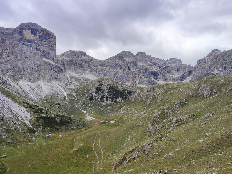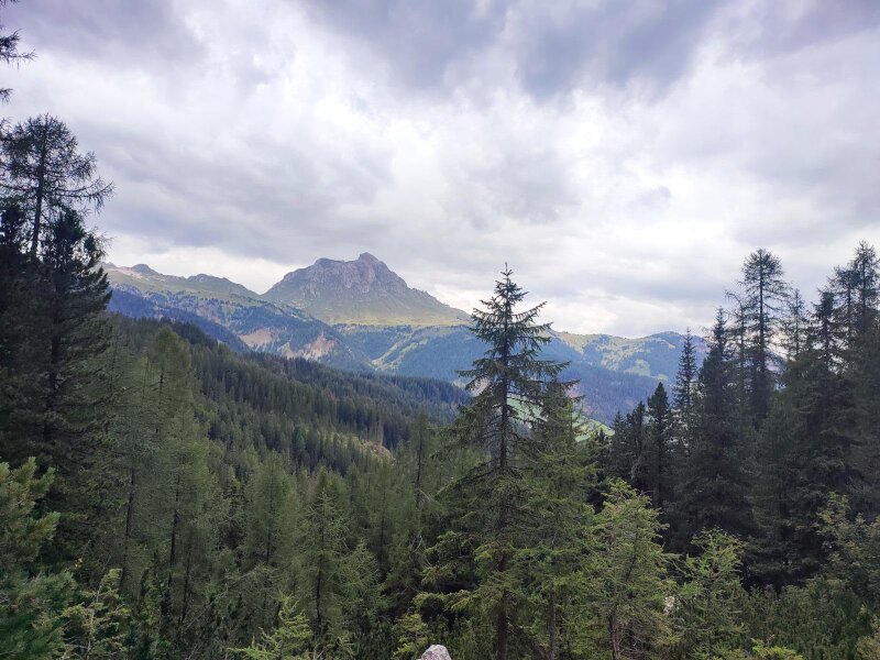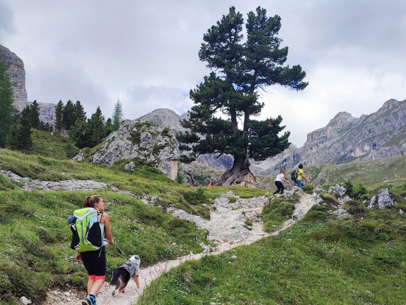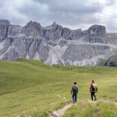 After the riding stables, path no. 9 begins (signpost "Antersasc-Puezhütte"): It leads us along a gravel road, ascending gently towards the Passo Juel. After about half an hour's walk, the signposted cart track, which later turns into a mountain path, branches off to the right into the Valle d'Antersasc. It is an idyllic valley with a magnificent natural landscape.