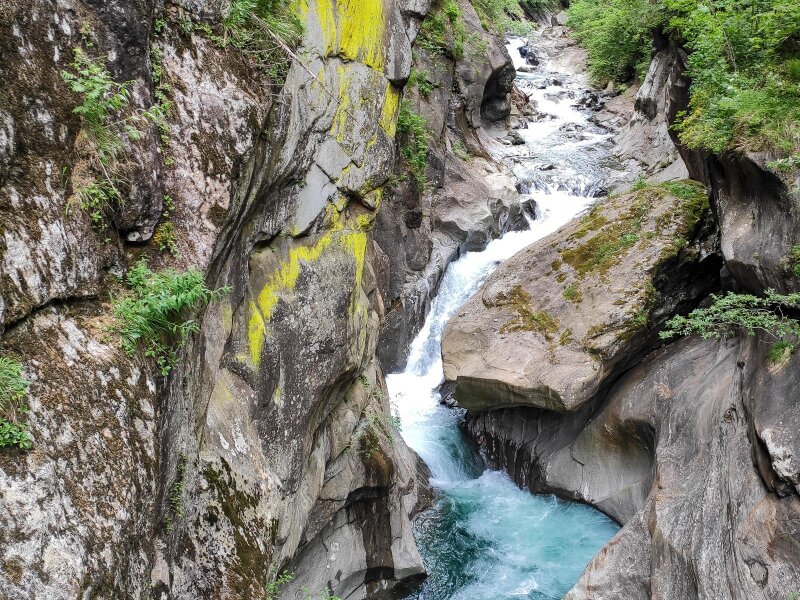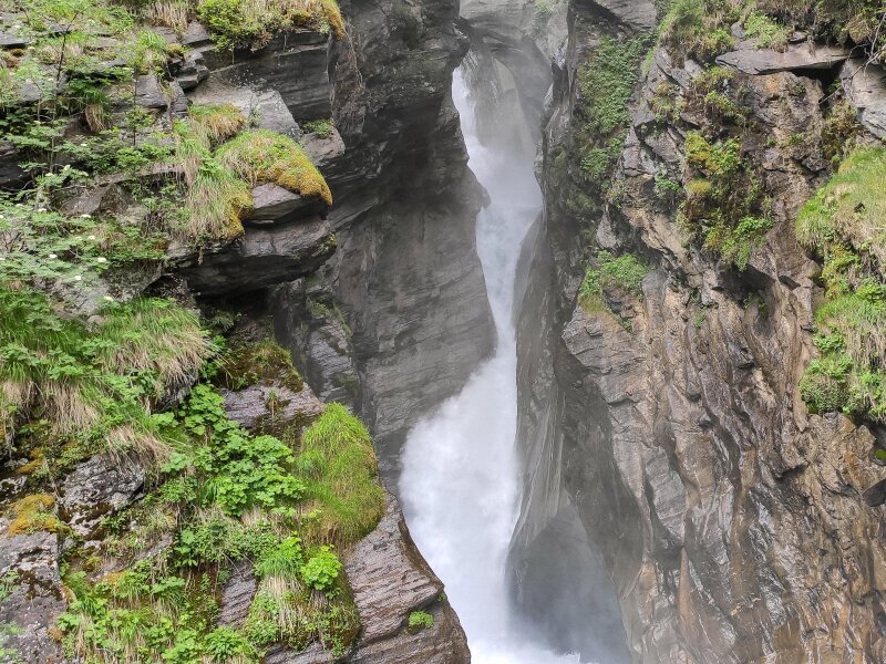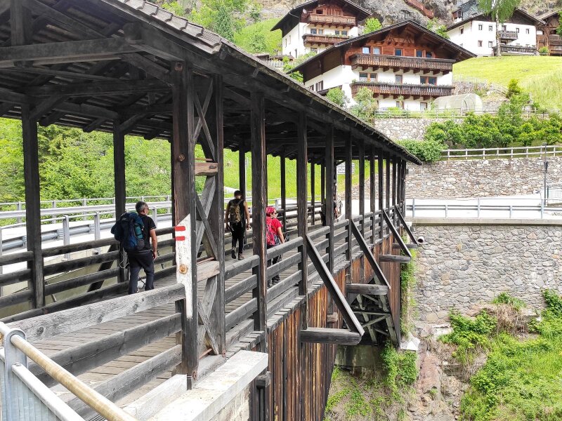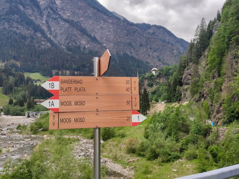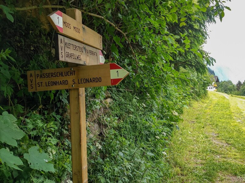 The power of water plays a significant role in the Val Passiria valley. It is particularly striking between Moso and San Leonardo: The Passirio Gorge, called Passerschlucht or Gola del Passirio, was carved into the rocks by the river and fitted with boardwalks and steel cables a few years ago, making it possible to experience it on an impressive hike. We park our car near Zogghof campground in San Leonardo in Passiria: The village is also easily accessible by bus from Merano.