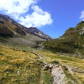 Immediately afterwards we come to a junction where trail no. 26 branches off to the left over a bridge. We take this path and reach the Neves Hut, where we turn left again towards the lake and keep to the right at the junction with the sign "Edelrauthütte", the German name of the Rifugio Ponte di Ghiaccio. The ascent is already quite steep at the beginning, but easily doable.